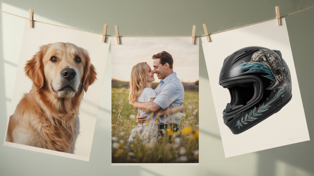 Inviami la tua foto o raccontami la tua idea: può essere un ritratto, il tuo pet, la tua moto, casco o qualsiasi altra ispirazione.